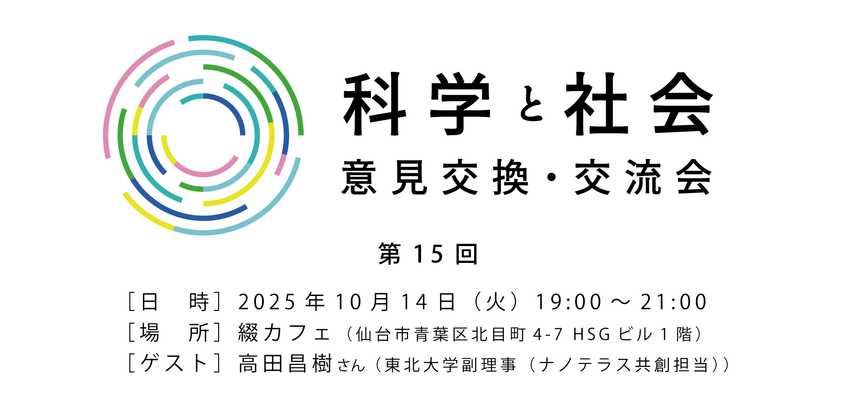 第15回「科学と社会」意見交換・交流会(ゲスト:東北大学副理事(ナノテラス共創担当)・光科学イノベーションセンター理事長の高田昌樹さん)の参加者を募集します(2025.10.14開催)