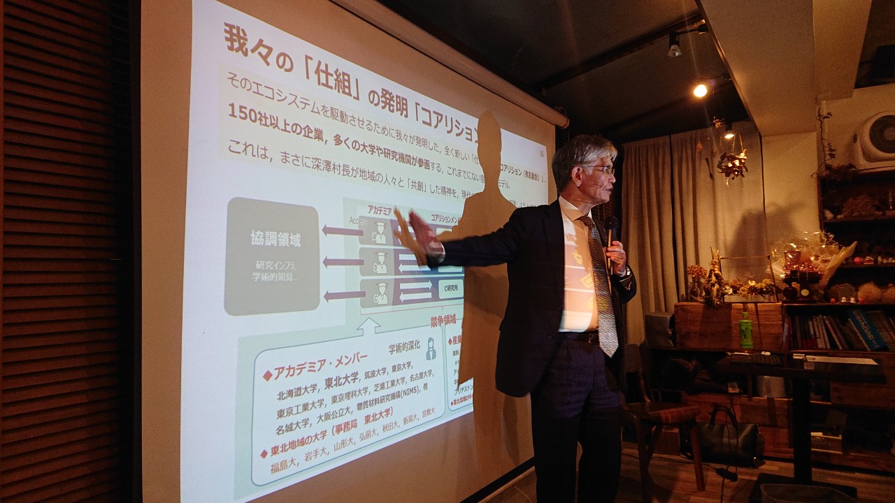 高田さんは、資金不足の中で「企業が資金を出すことで社会ニーズの存在が証明される」と考え、放射光を使ったことのない企業でも、学術メンバーと1対1で共創できる体制を構築しました。さらに東北経済連合会と連携し、中小企業も小口で参加できる仕組みを整備。「コアリションという多義的な言葉を使ったのは、すべての関係者が自分事として関わることで、持続的に進化する仕組みにしたかった」と語りました。
